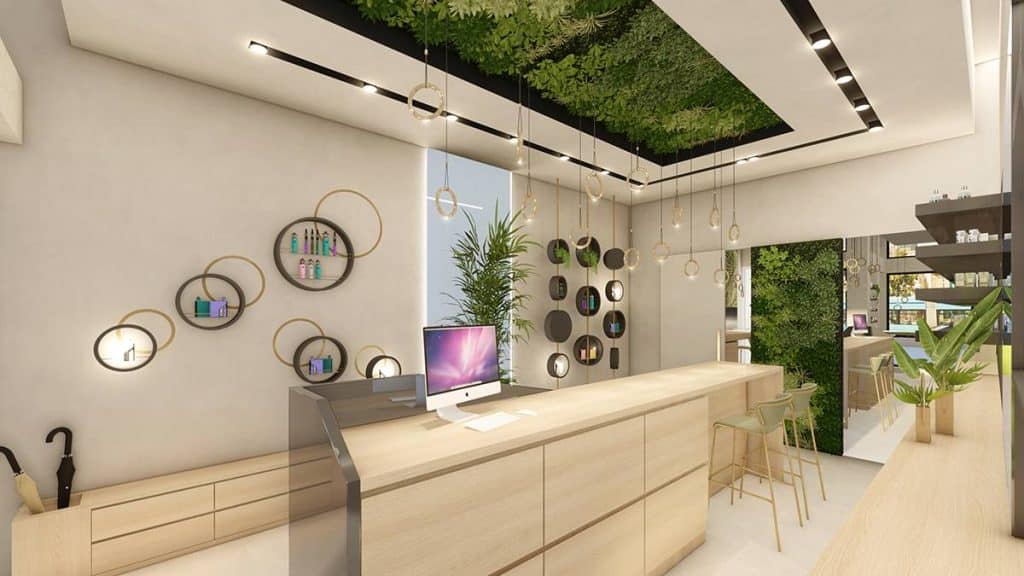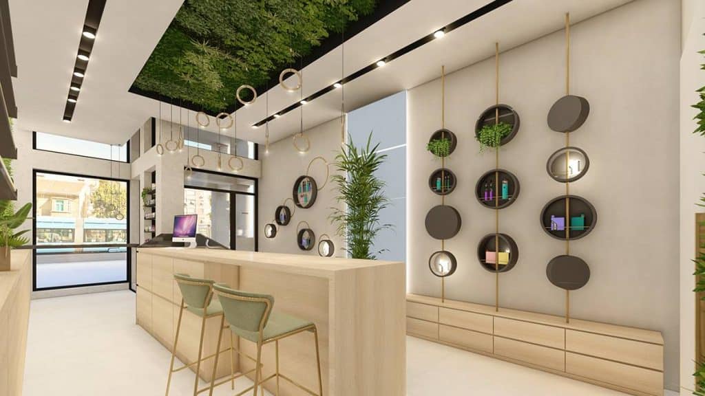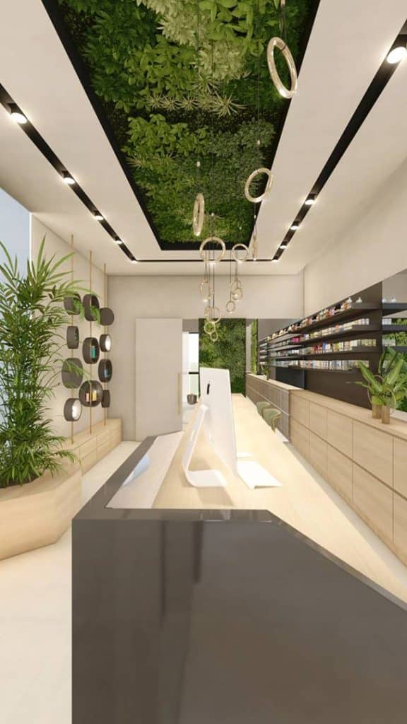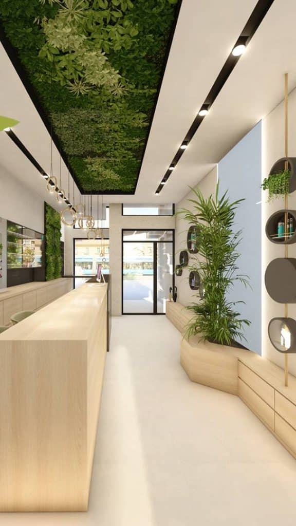 Ugodniji i svježiji dojam smo postigli i ubacivanjem zelenila. Biljke u prodajnom dijelu dodaju dinamku prostoru, a u dijelu skladišta i zahoda, zelenilo smo unijeli preko zidnih tapeta.
