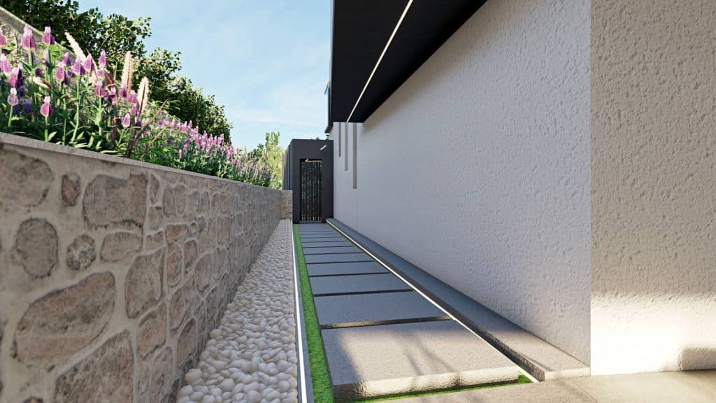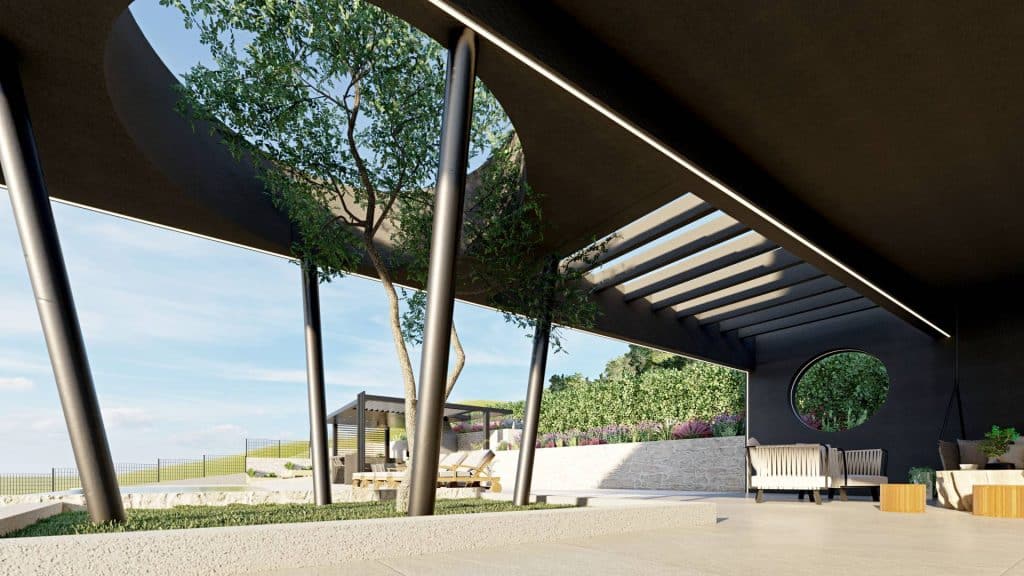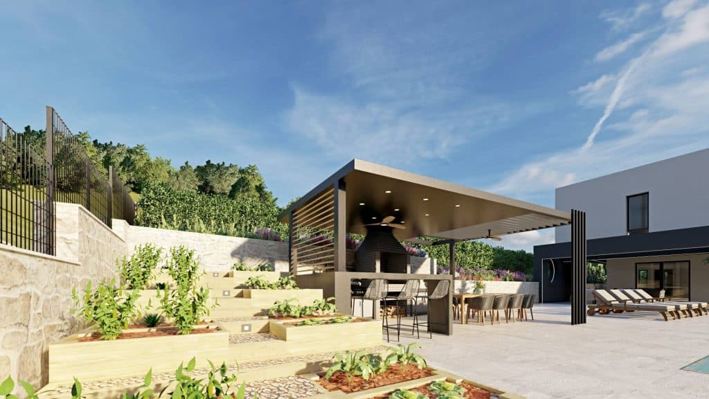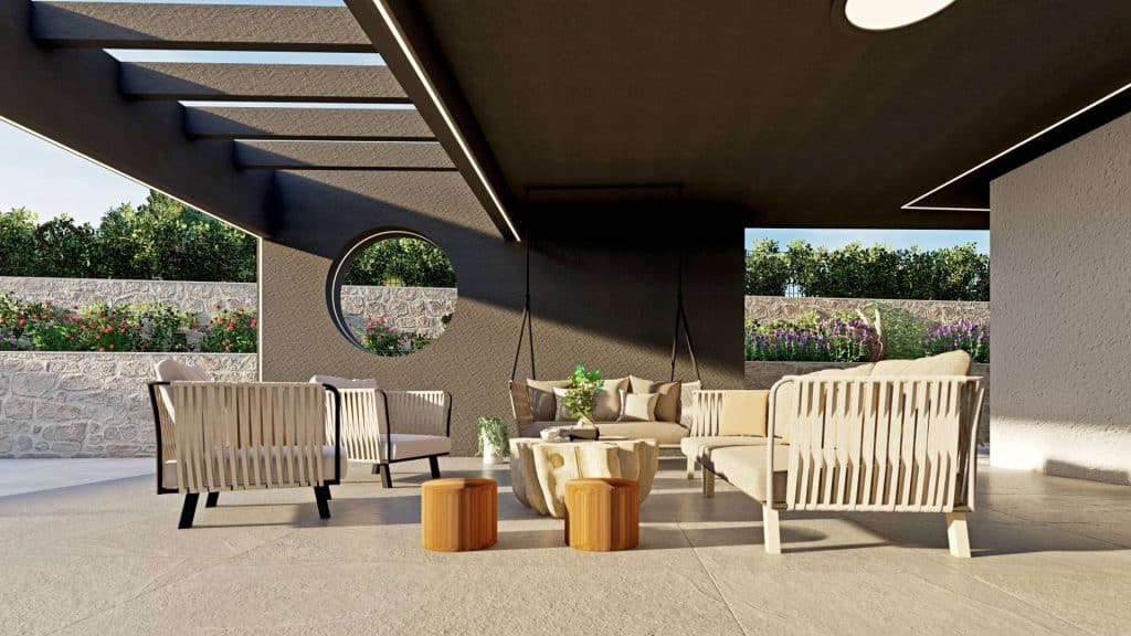 Garaža, konoba, sauna i vinski podrum toplom su vezom povezani sa prizemljem I katom gdje su se dnevni, radni i spavaći prostori u svakom trenutku uživaju u spektakularnom pogledu.