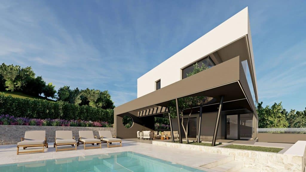 U šumovitom dijelu Sambora, na padini s fantastičnim pogledom na Sljeme projektirali smo obiteljsku kuću na tri etaže.