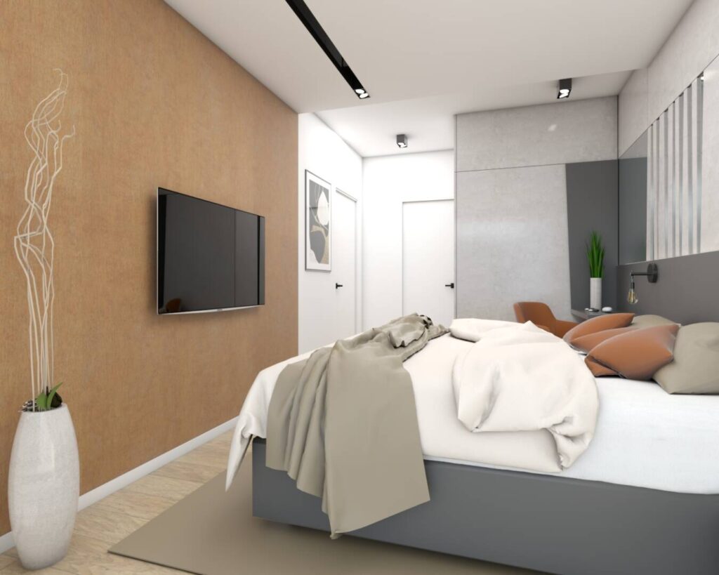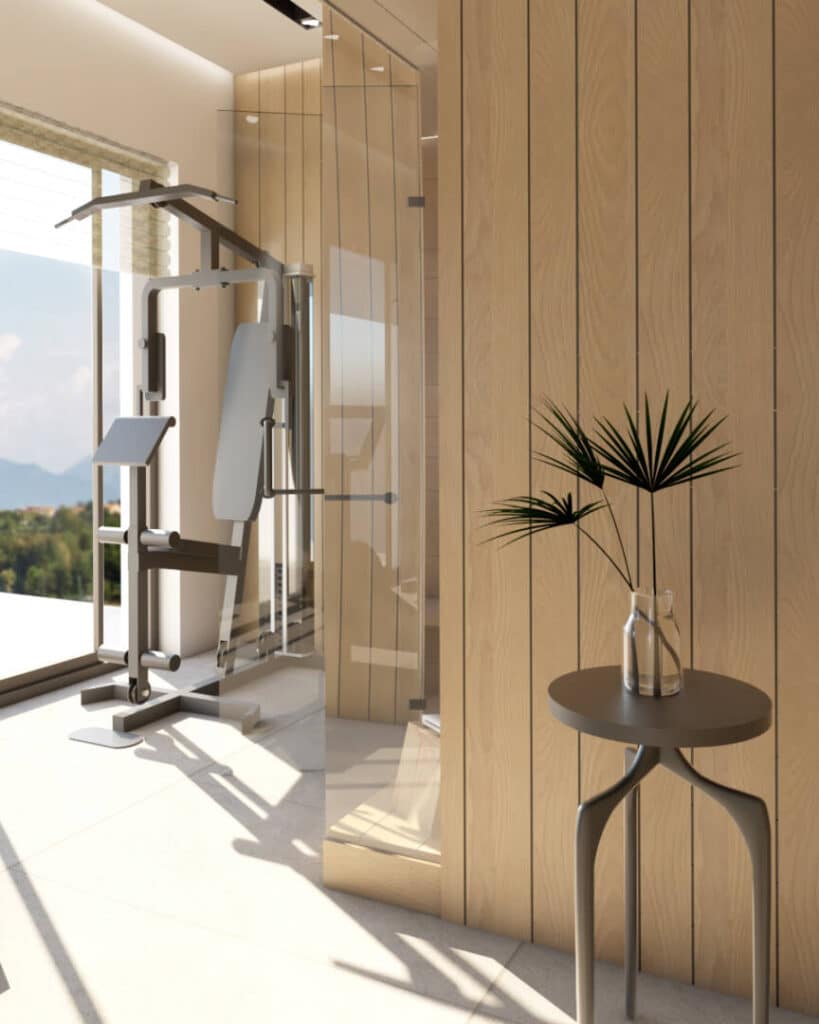 Pag je poznat po slaboj pokrivenosti vegetacijom stoga smo pod jedne od vila odlučili pokriti drvom. Daljnjim razmišljanjem došli smo do zaključka da keramičko drvo možda neće biti dovoljno te smo se odlučili približiti nam prirodu još malo kroz drvene dekore na stolarski izrađenom namještaju te narančastim i smeđim tonovima tekstila i tapeta u interijeru.